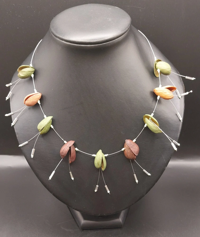 Ammerová Bohumila: Náhrdelník pistácie - oranžovo-zeleno-hnědýSkladem 1 ks500 Kč/ ks