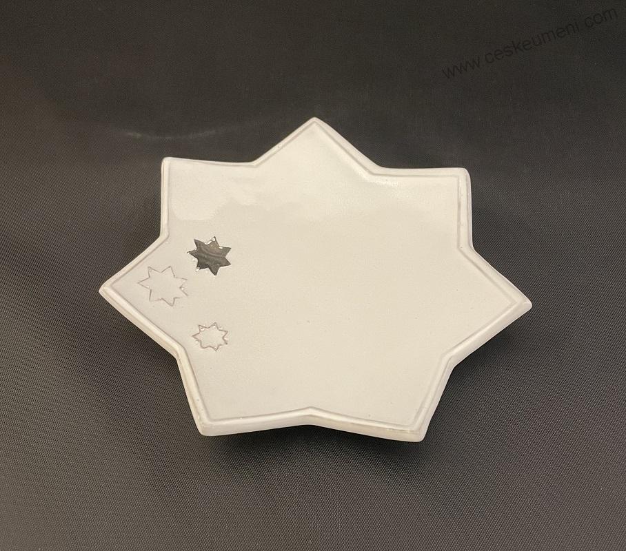 Materiál, velikost:Keramika, platina, bílá glazura, š. 15cm v. 2cm h. 15cm