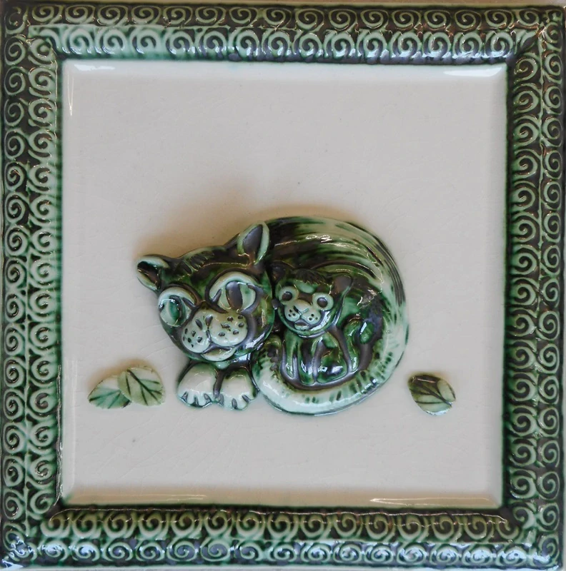 Oršulíková Stanislava: Kachel - Kočička s koťátkemSkladem 1 ks650 Kč/ ks